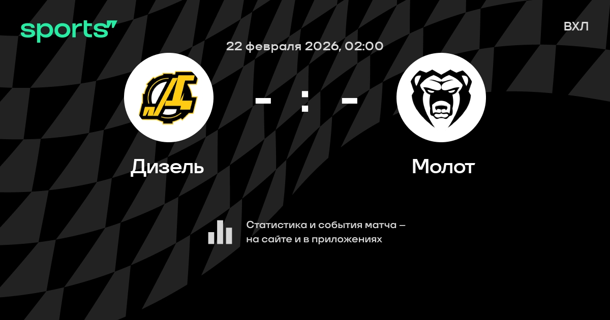 В предстоящем матче в рамках турнира ВХЛ пройдет встреча команд Дизель - Молот в городе на стадионе Diesel-Arena.