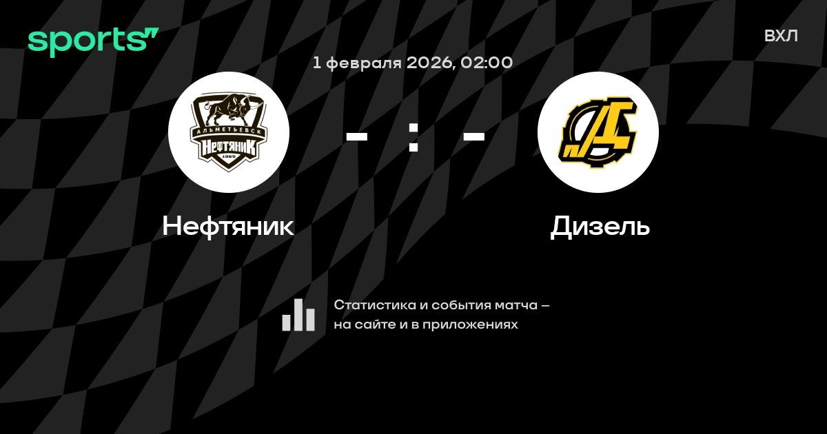 В предстоящем матче в рамках турнира ВХЛ пройдет встреча команд Нефтяник - Дизель в городе на стадионе Dvorets Sporta Yubileynyy.