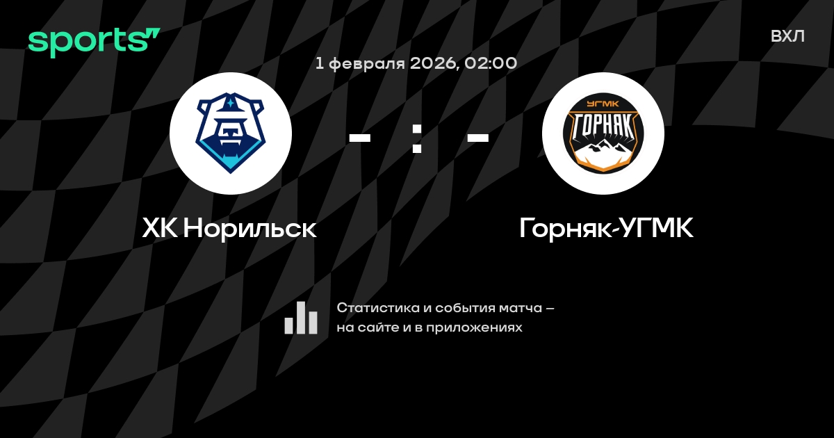 В предстоящем матче в рамках турнира ВХЛ пройдет встреча команд ХК Норильск - Горняк-УГМК в городе на стадионе Dvorets Sporta Arktika.