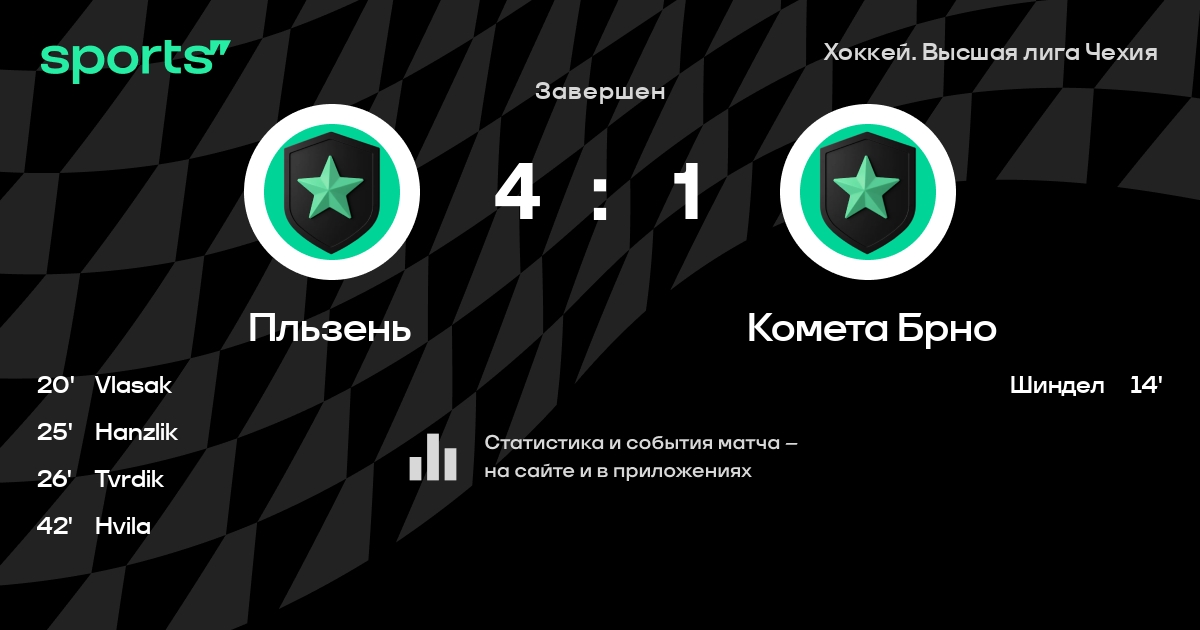 В прошедшем матче в рамках турнира Хоккей. Высшая лига Чехия состоялась встреча команд Пльзень - Комета Брно