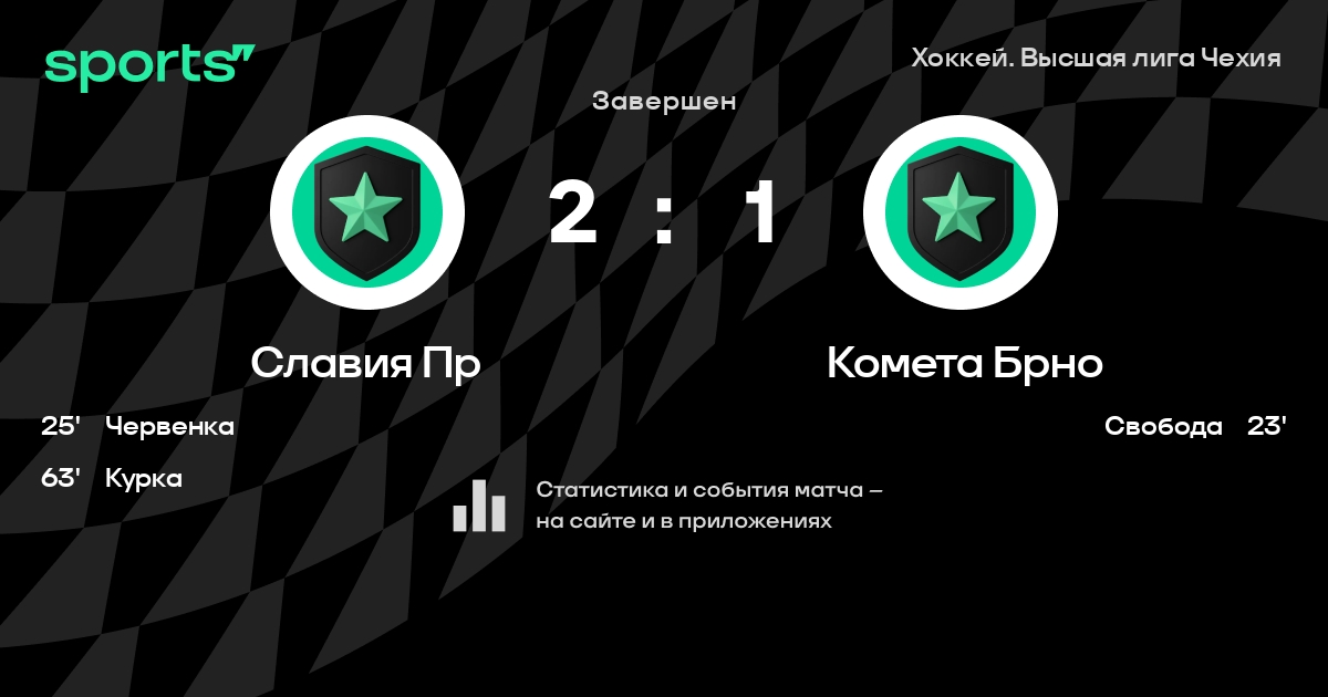 В прошедшем матче в рамках турнира Хоккей. Высшая лига Чехия состоялась встреча команд Славия Пр - Комета Брно
