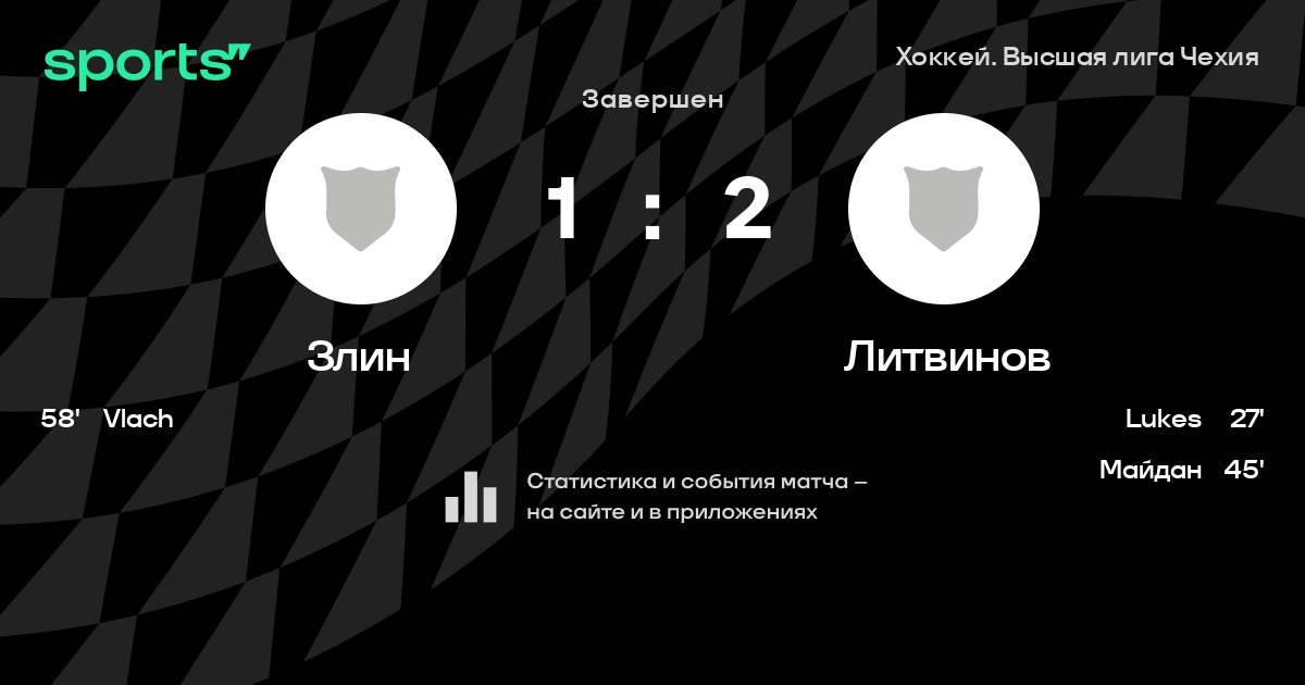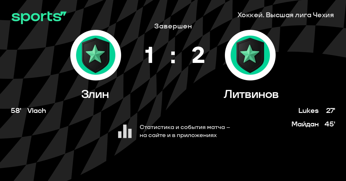 В прошедшем матче в рамках турнира Хоккей. Высшая лига Чехия состоялась встреча команд Злин - Литвинов