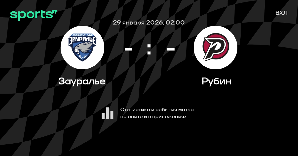 В предстоящем матче в рамках турнира ВХЛ пройдет встреча команд Зауралье - Рубин в городе на стадионе Ledovyy Dvorets Sporta Im. N.v. Parysheva.