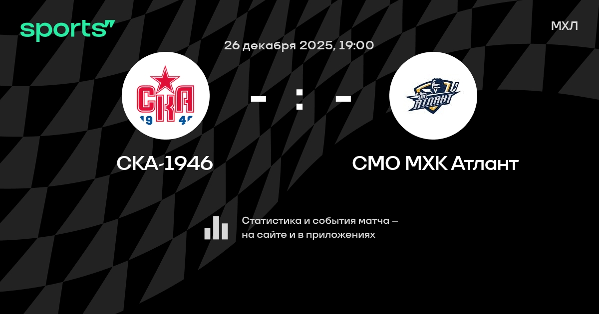 В предстоящем матче в рамках турнира МХЛ пройдет встреча команд СКА-1946 - СМО МХК Атлант в городе на стадионе Hockey City.