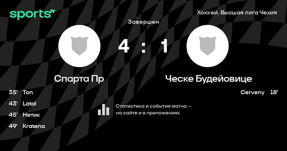 В прошедшем матче в рамках турнира Хоккей. Высшая лига Чехия состоялась встреча команд Спарта Пр - Ческе Будейовице