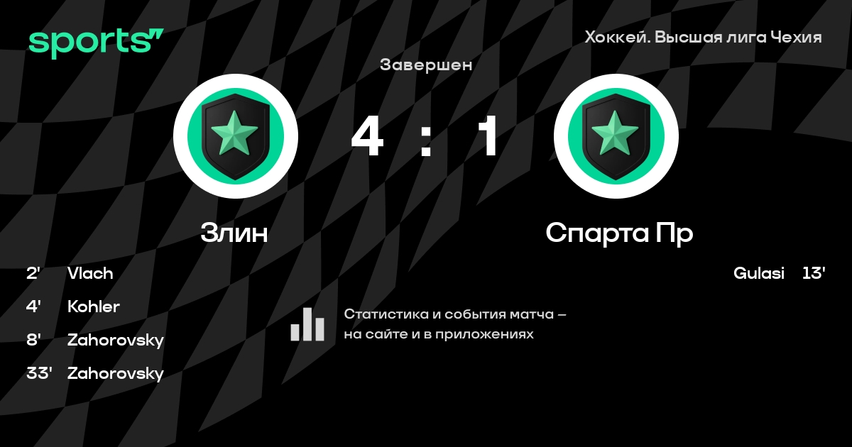 В прошедшем матче в рамках турнира Хоккей. Высшая лига Чехия состоялась встреча команд Злин - Спарта Пр