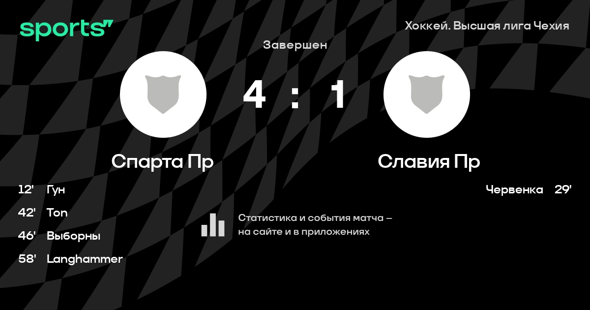В прошедшем матче в рамках турнира Хоккей. Высшая лига Чехия состоялась встреча команд Спарта Пр - Славия Пр