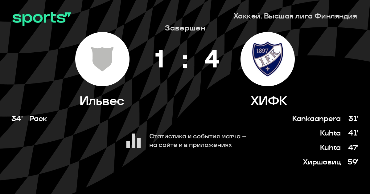 В прошедшем матче в рамках турнира Хоккей. Высшая лига Финляндия состоялась встреча команд Ильвес - ХИФК