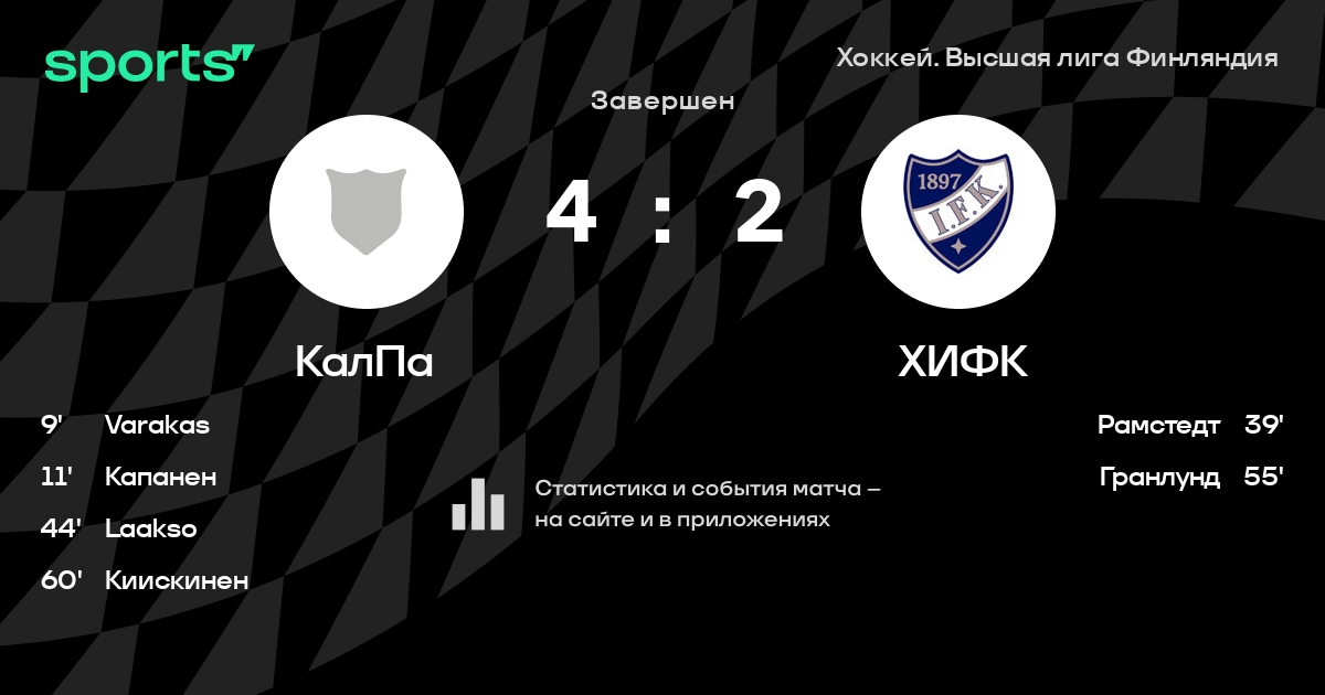 В прошедшем матче в рамках турнира Хоккей. Высшая лига Финляндия состоялась встреча команд КалПа - ХИФК