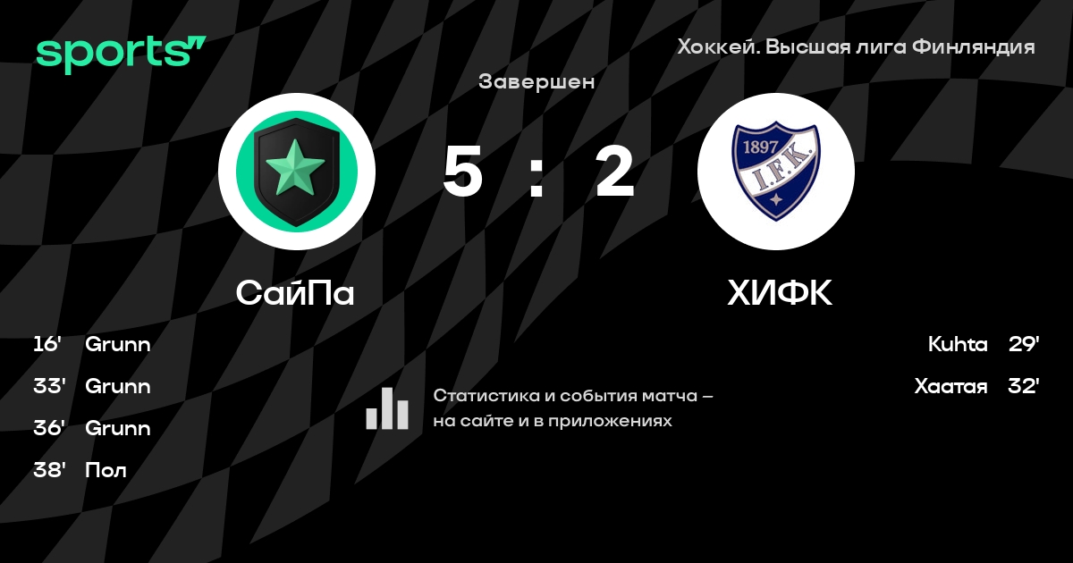 В прошедшем матче в рамках турнира Хоккей. Высшая лига Финляндия состоялась встреча команд СайПа - ХИФК