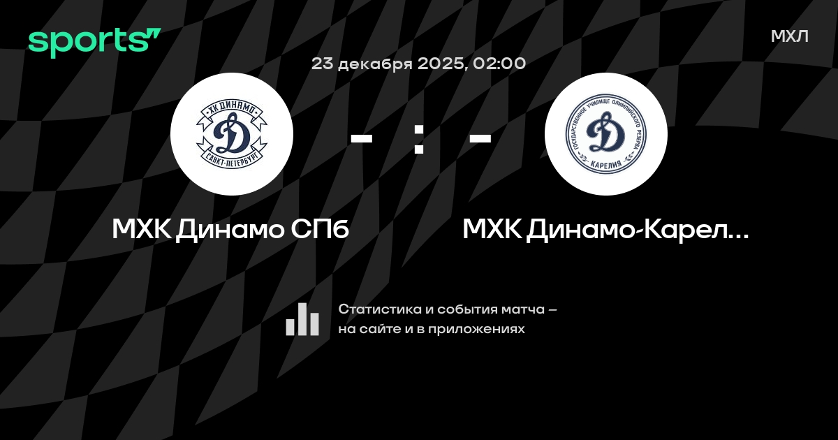 В предстоящем матче в рамках турнира МХЛ пройдет встреча команд МХК Динамо СПб - МХК Динамо-Карелия в городе на стадионе SK Yubileynyy (Malaya Arena).