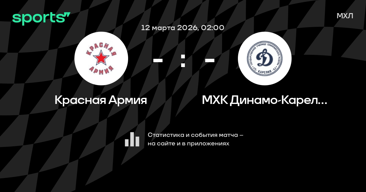 В предстоящем матче в рамках турнира МХЛ пройдет встреча команд Красная Армия - МХК Динамо-Карелия .