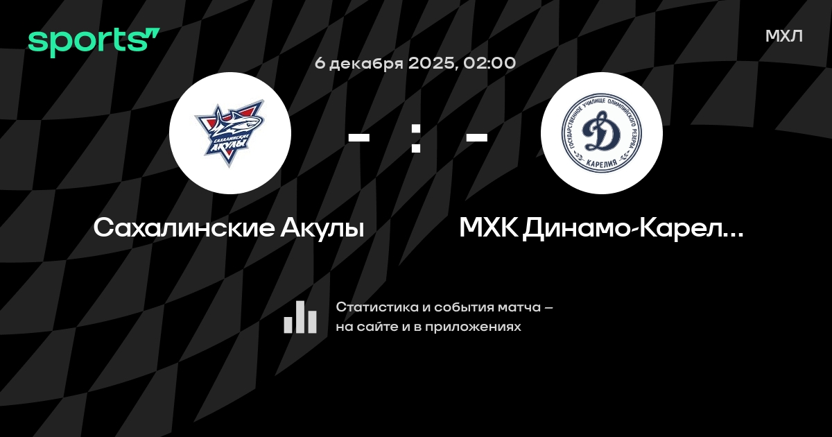 В предстоящем матче в рамках турнира МХЛ пройдет встреча команд Сахалинские Акулы - МХК Динамо-Карелия в городе на стадионе Arena City Yuzhno-Sakhalinsk.
