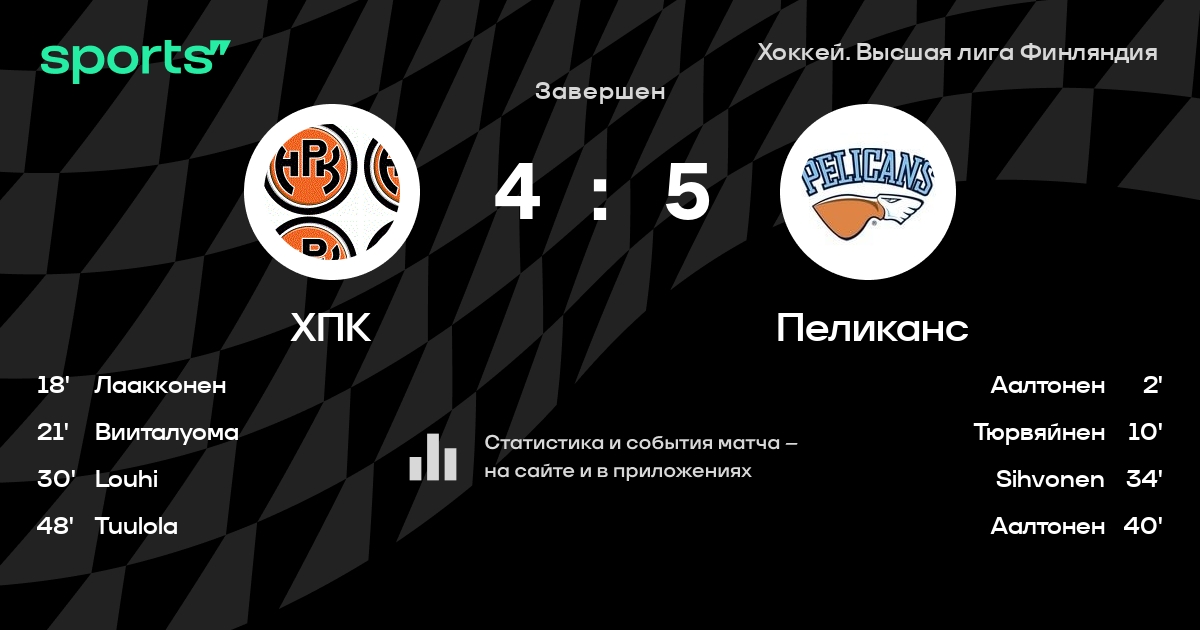 В прошедшем матче в рамках турнира Хоккей. Высшая лига Финляндия состоялась встреча команд ХПК - Пеликанс
