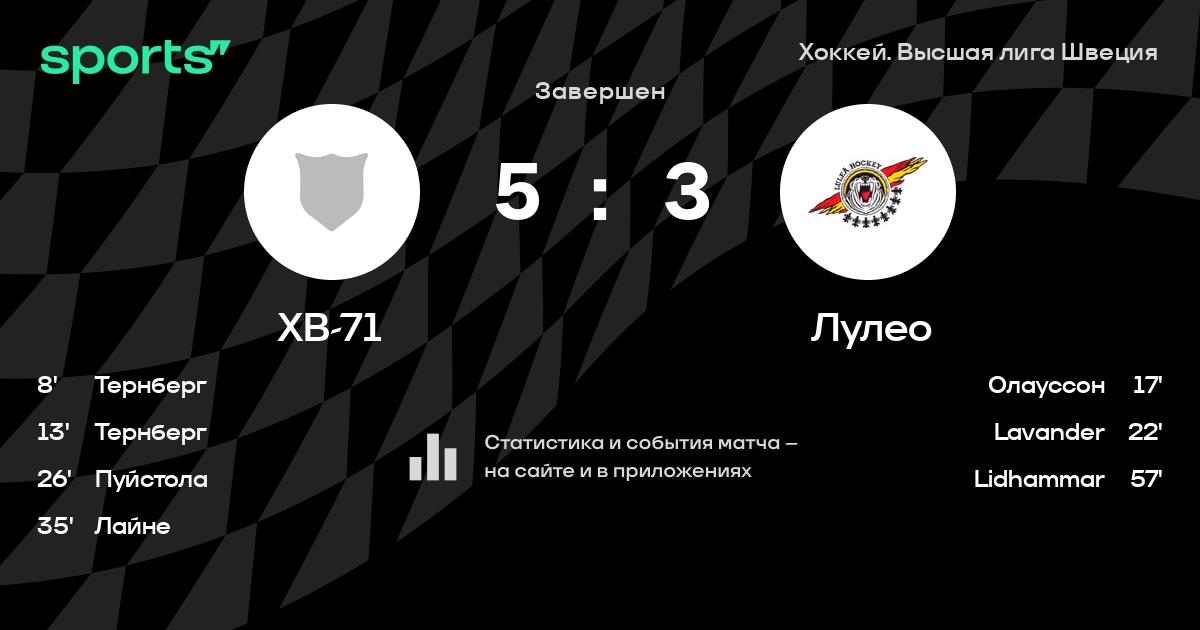 Как прошел матч, смотрите в текстовой трансляции ХВ-71 - Лулео на Sports.ru