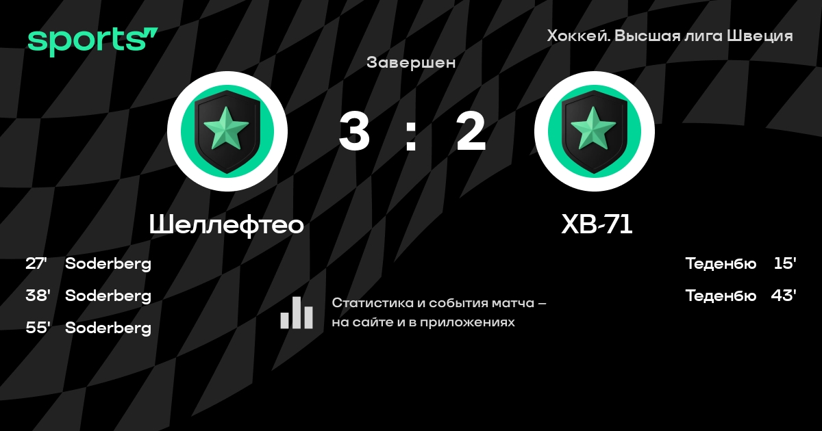 В прошедшем матче в рамках турнира Хоккей. Высшая лига Швеция состоялась встреча команд Шеллефтео - ХВ-71