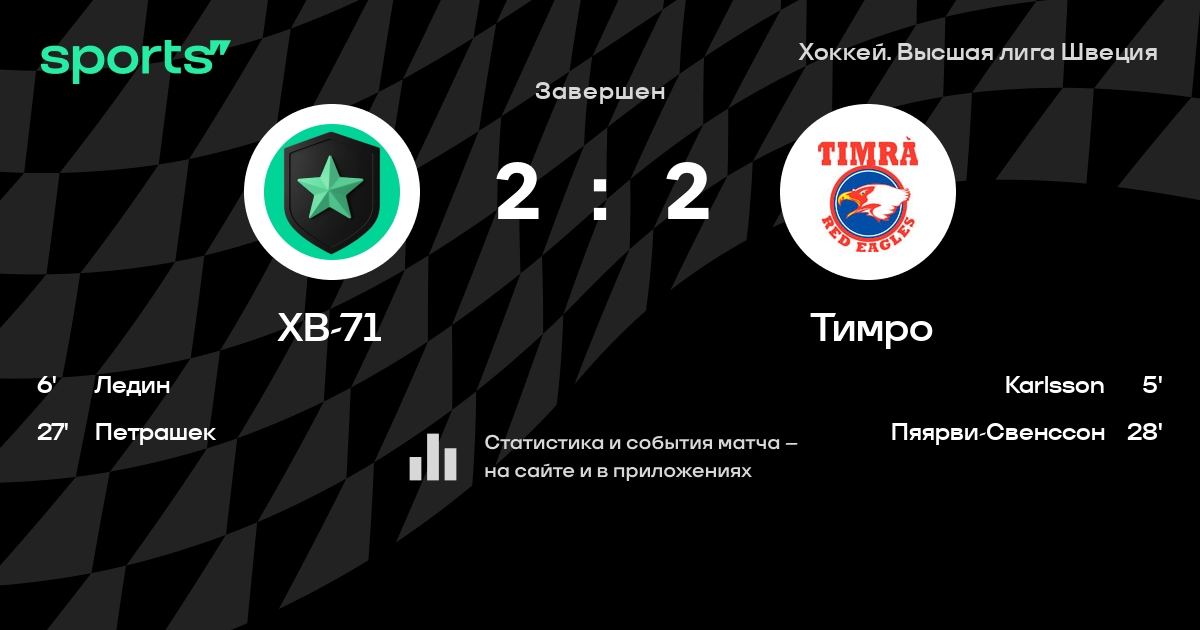 В прошедшем матче в рамках турнира Хоккей. Высшая лига Швеция состоялась встреча команд ХВ-71 - Тимро