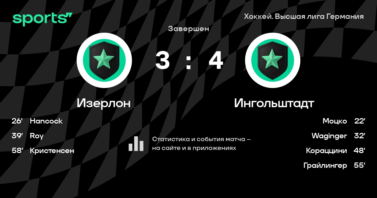 В прошедшем матче в рамках турнира Хоккей. Высшая лига Германия состоялась встреча команд Изерлон - Ингольштадт