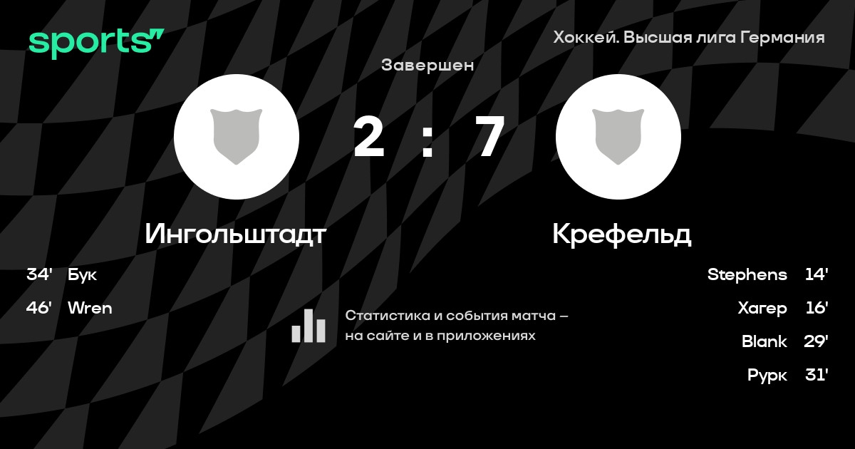 В прошедшем матче в рамках турнира Хоккей. Высшая лига Германия состоялась встреча команд Ингольштадт - Крефельд
