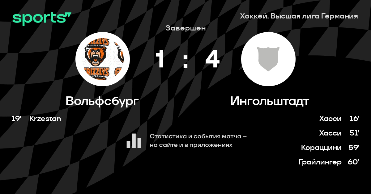 В прошедшем матче в рамках турнира Хоккей. Высшая лига Германия состоялась встреча команд Вольфсбург - Ингольштадт