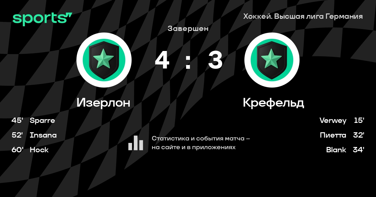 В прошедшем матче в рамках турнира Хоккей. Высшая лига Германия состоялась встреча команд Изерлон - Крефельд