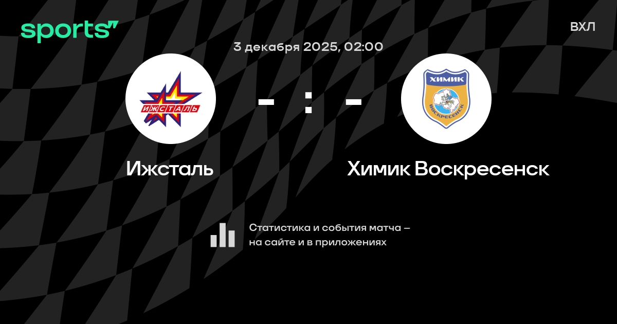 В предстоящем матче в рамках турнира ВХЛ пройдет встреча команд Ижсталь - Химик Воскресенск в городе на стадионе Ledovyy Dvorets Izhstal.