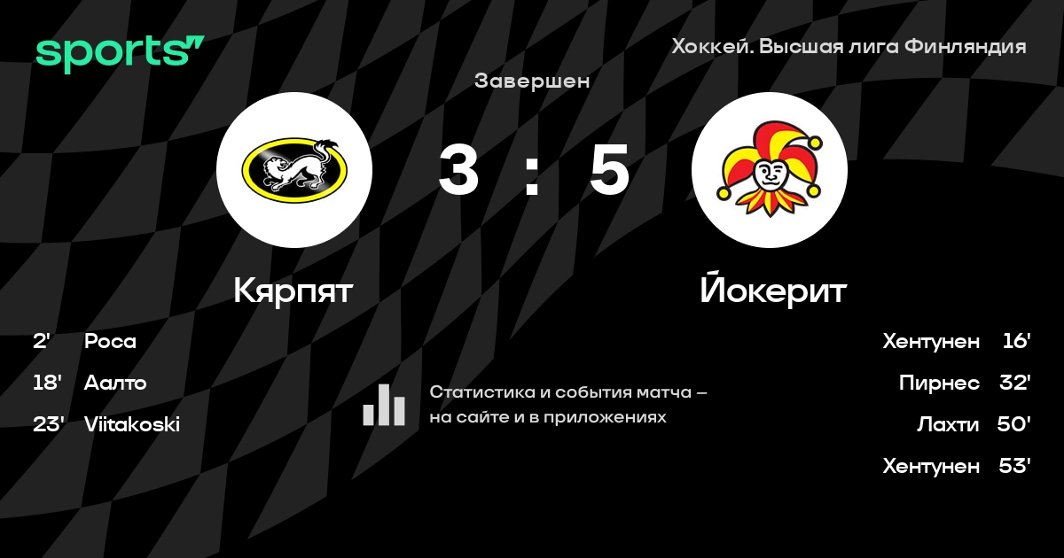 В прошедшем матче в рамках турнира Хоккей. Высшая лига Финляндия состоялась встреча команд Кярпят - Йокерит