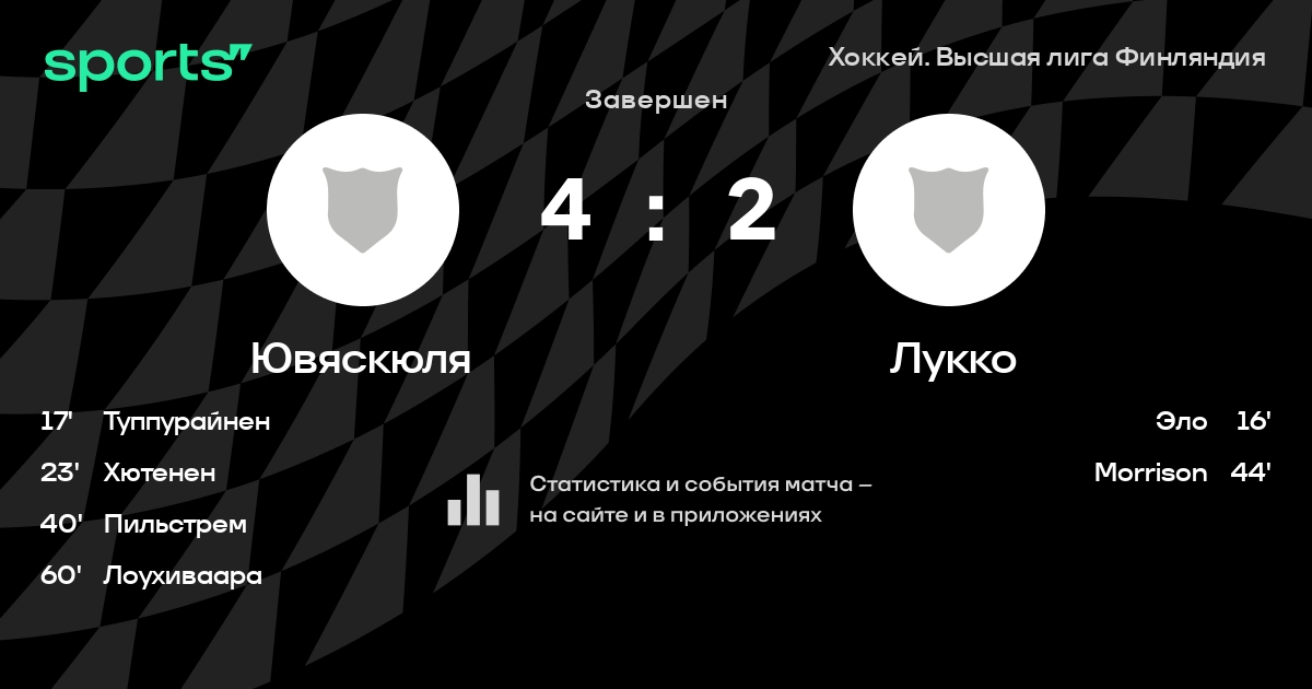 В прошедшем матче в рамках турнира Хоккей. Высшая лига Финляндия состоялась встреча команд Ювяскюля - Лукко