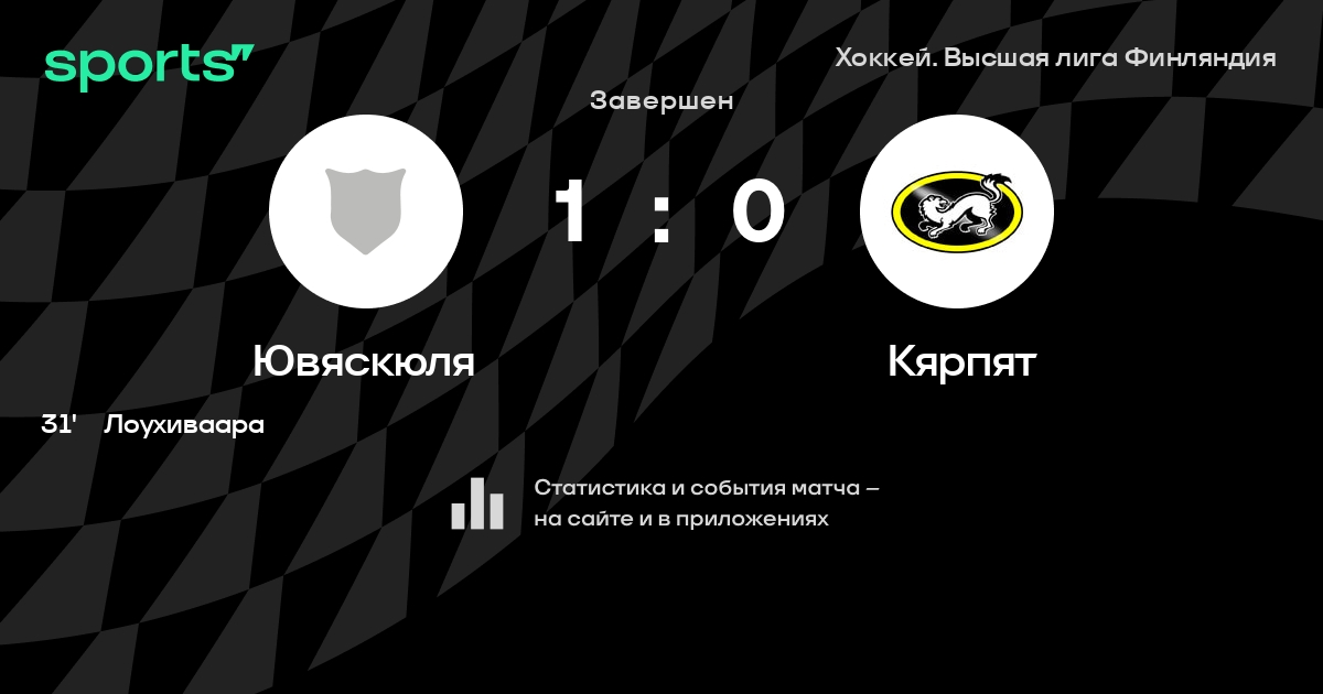 В прошедшем матче в рамках турнира Хоккей. Высшая лига Финляндия состоялась встреча команд Ювяскюля - Кярпят