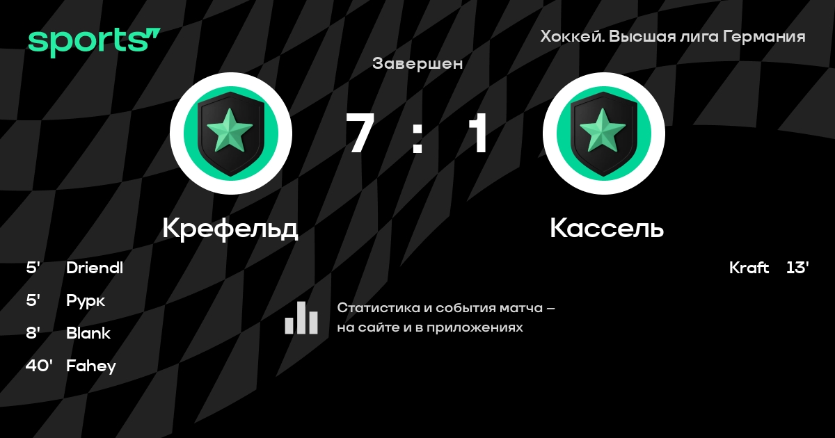 В прошедшем матче в рамках турнира Хоккей. Высшая лига Германия состоялась встреча команд Крефельд - Кассель