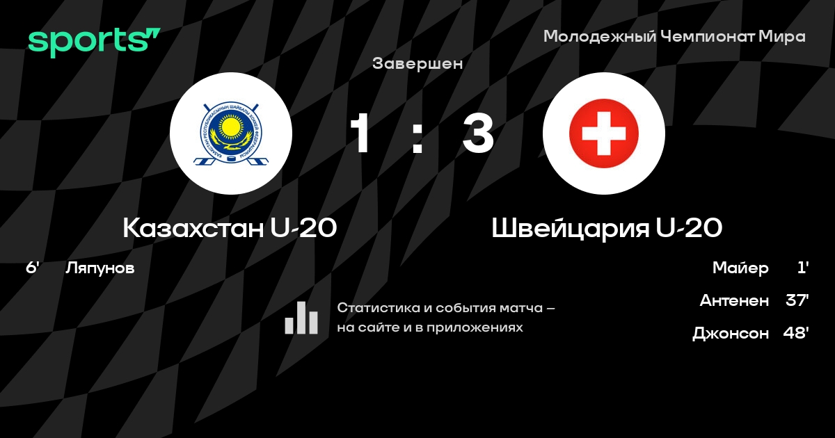 В прошедшем матче в рамках турнира Молодежный Чемпионат Мира (Групповая стадия) состоялась встреча команд Казахстан U-20 - Швейцария U-20 в городе Ottawa, ON (Канада) на стадионе Ти-ди Плэйс Стэдиум (вместимость - 9862)