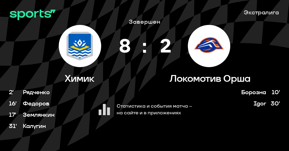 В прошедшем матче в рамках турнира Экстралига состоялась встреча команд Химик - Локомотив Орша в городе Новополоцк (Беларусь) на стадионе Дворец культуры и спорта (вместимость - 1200)