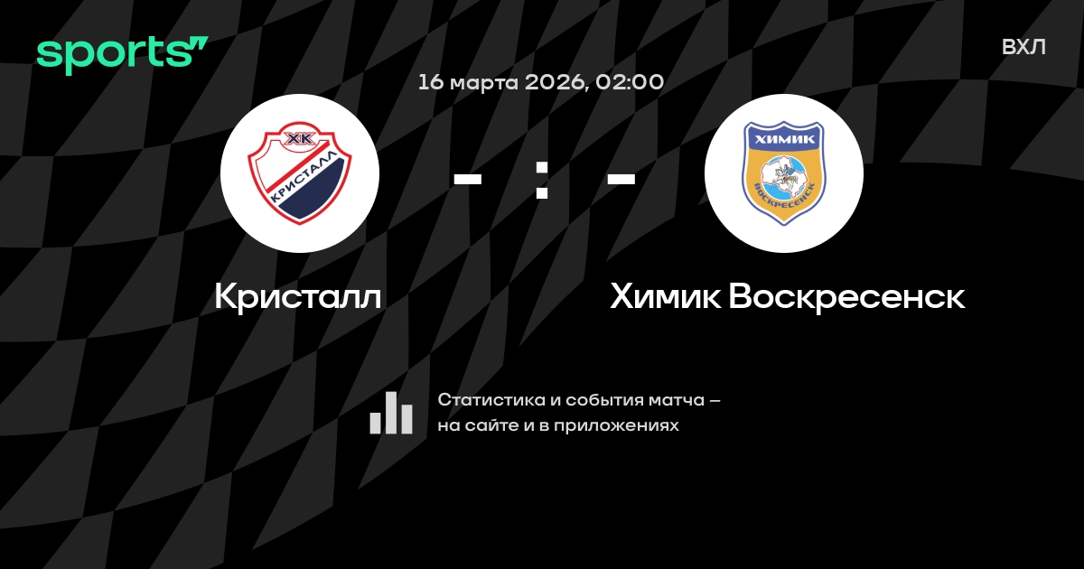 В предстоящем матче в рамках турнира ВХЛ пройдет встреча команд Кристалл - Химик Воскресенск в городе на стадионе Ledovyy dvorets sporta Kristall.