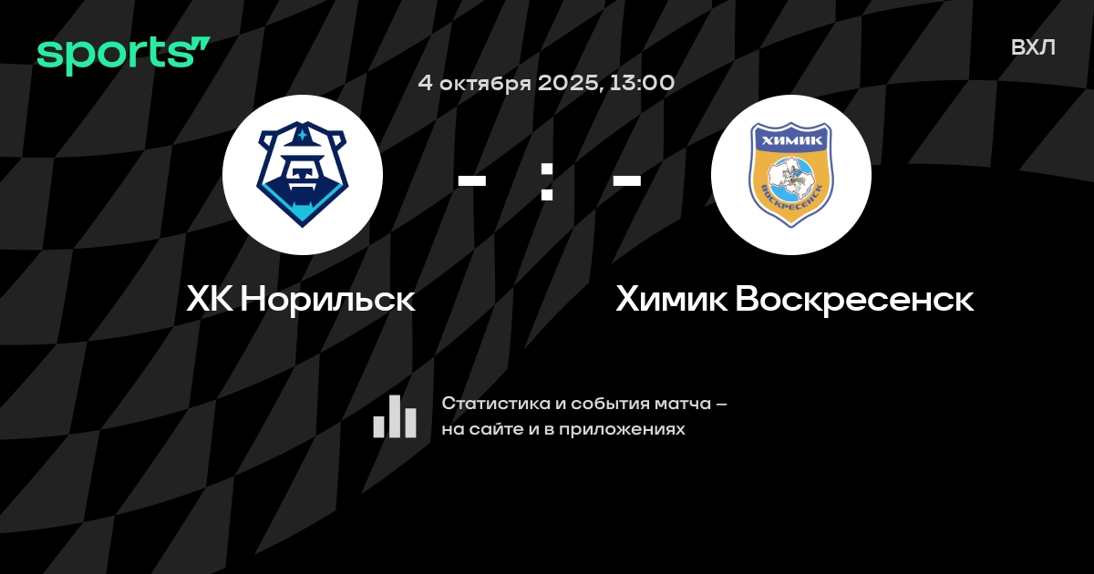 В предстоящем матче в рамках турнира ВХЛ пройдет встреча команд ХК Норильск - Химик Воскресенск в городе на стадионе Dvorets Sporta Arktika.