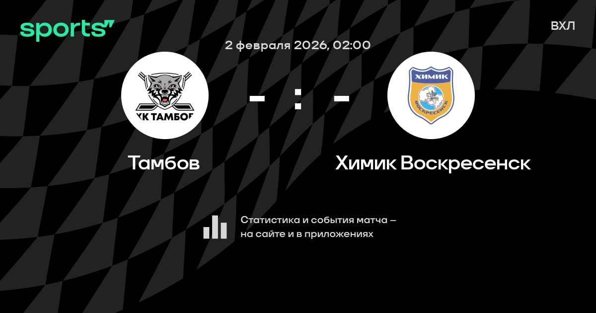 В предстоящем матче в рамках турнира ВХЛ пройдет встреча команд Тамбов - Химик Воскресенск в городе на стадионе Sports Palace Crystal.