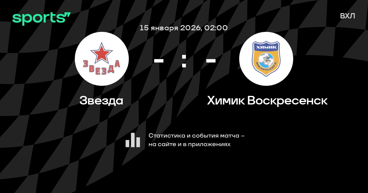 В предстоящем матче в рамках турнира ВХЛ пройдет встреча команд Звезда - Химик Воскресенск в городе Москва (Россия) на стадионе ЦСКА-Арена.