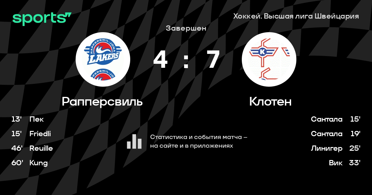В прошедшем матче в рамках турнира Хоккей. Высшая лига Швейцария состоялась встреча команд Рапперсвиль - Клотен