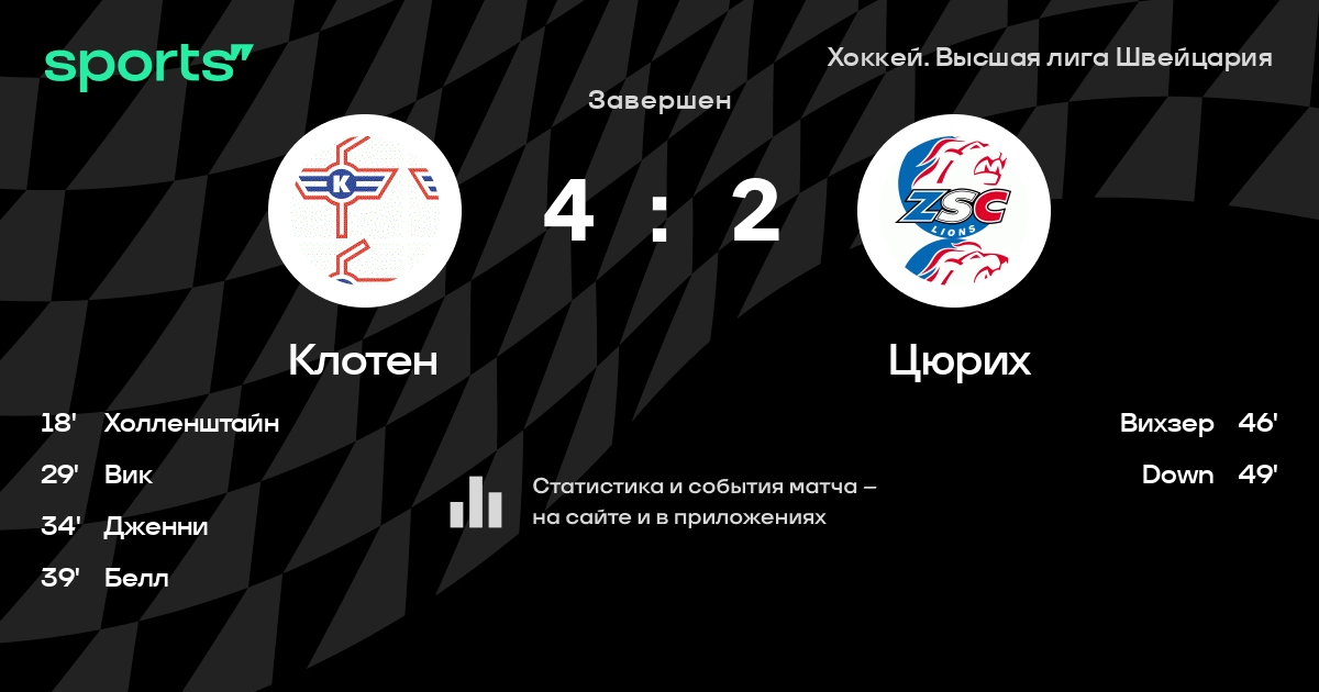 В прошедшем матче в рамках турнира Хоккей. Высшая лига Швейцария состоялась встреча команд Клотен - Цюрих