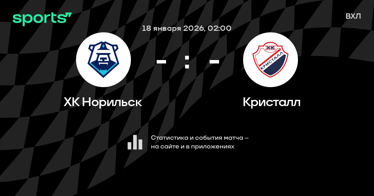 В предстоящем матче в рамках турнира ВХЛ пройдет встреча команд ХК Норильск - Кристалл в городе на стадионе Dvorets Sporta Arktika.