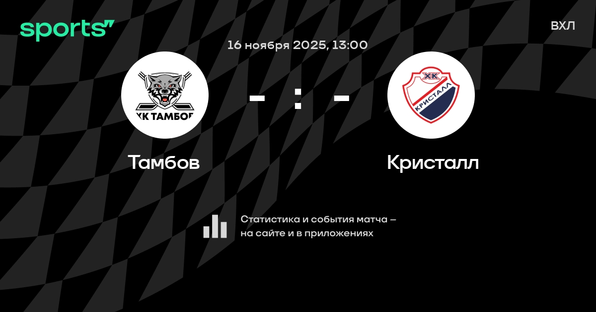 В предстоящем матче в рамках турнира ВХЛ пройдет встреча команд Тамбов - Кристалл в городе на стадионе Sports Palace Crystal.