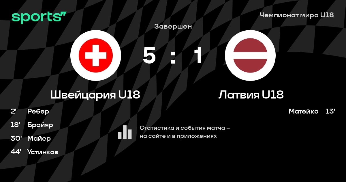 Как прошел матч, смотрите в текстовой трансляции Швейцария U18 - Латвия U18 на Sports.ru