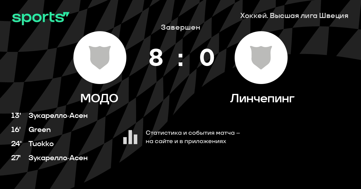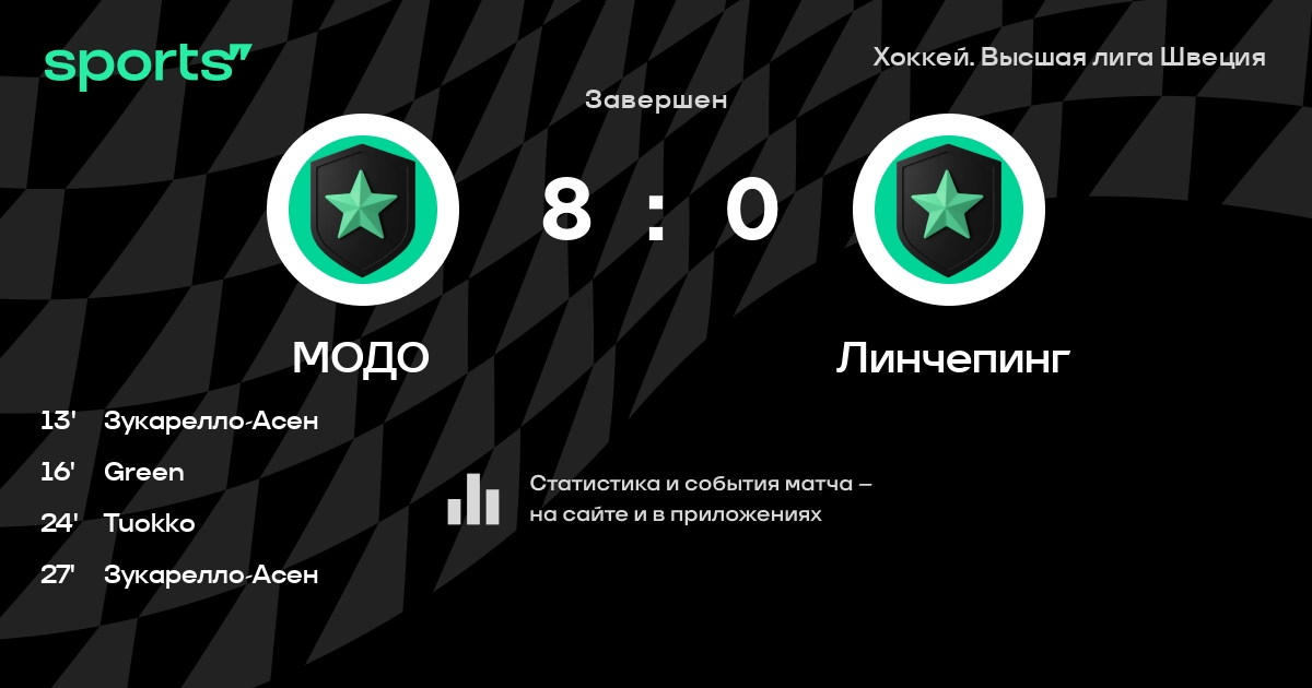 В прошедшем матче в рамках турнира Хоккей. Высшая лига Швеция состоялась встреча команд МОДО - Линчепинг