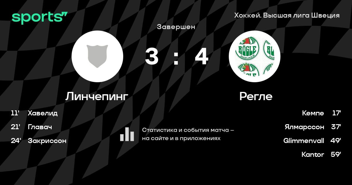 В прошедшем матче в рамках турнира Хоккей. Высшая лига Швеция состоялась встреча команд Линчепинг - Регле