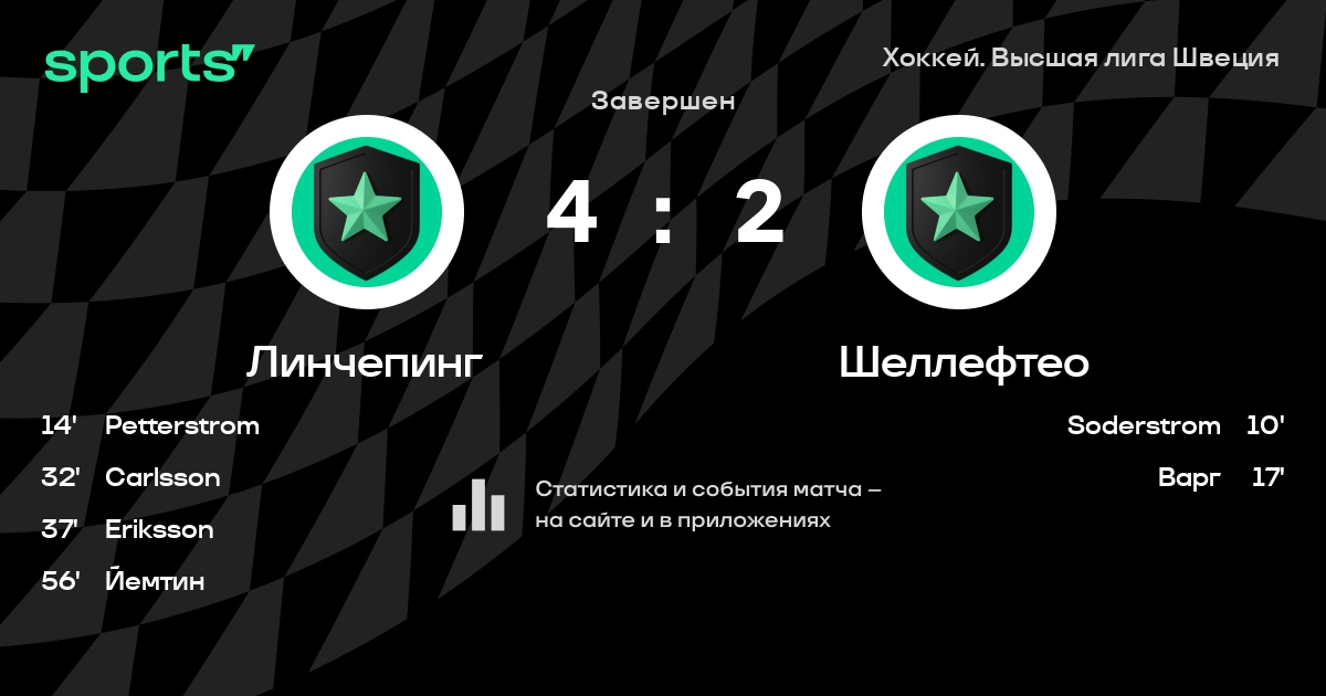 В прошедшем матче в рамках турнира Хоккей. Высшая лига Швеция состоялась встреча команд Линчепинг - Шеллефтео