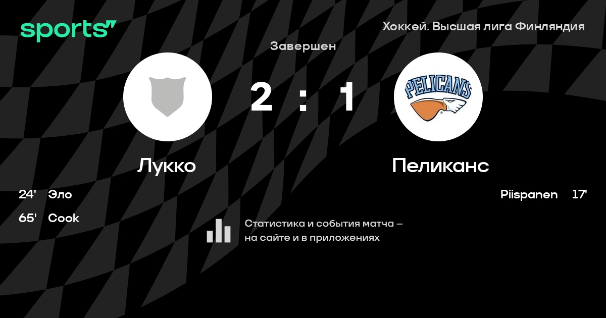В прошедшем матче в рамках турнира Хоккей. Высшая лига Финляндия состоялась встреча команд Лукко - Пеликанс