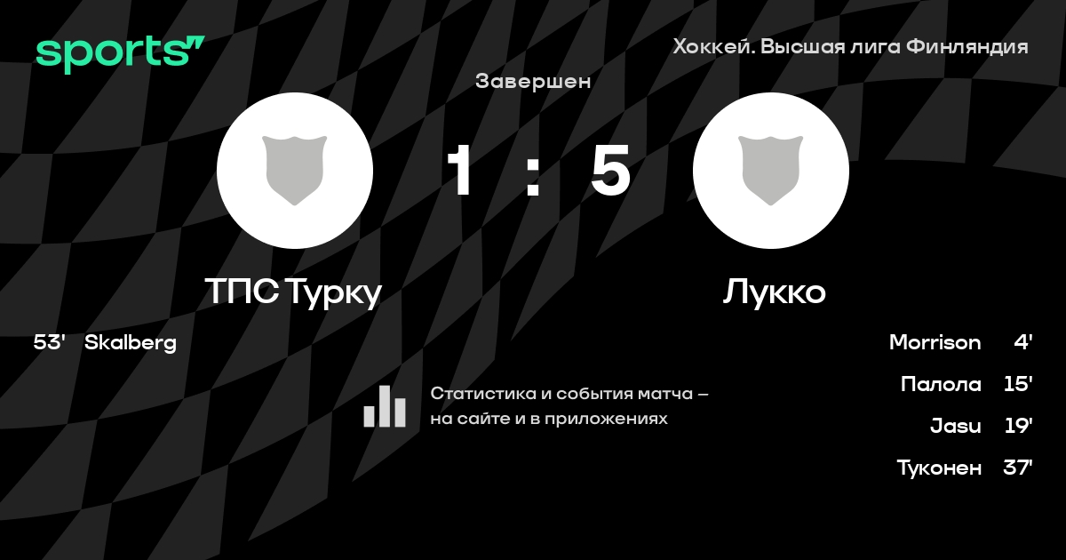 В прошедшем матче в рамках турнира Хоккей. Высшая лига Финляндия состоялась встреча команд ТПС Турку - Лукко