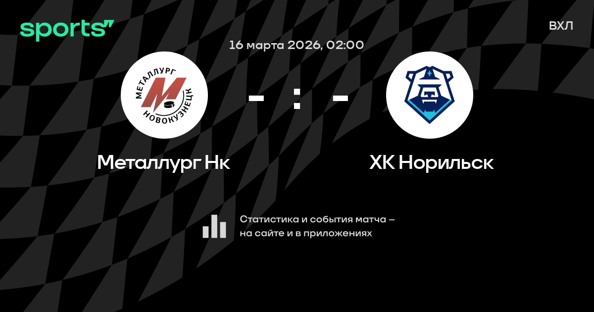В предстоящем матче в рамках турнира ВХЛ пройдет встреча команд Металлург Нк - ХК Норильск в городе на стадионе Dvorets sporta Kuznetsk Metallurg.