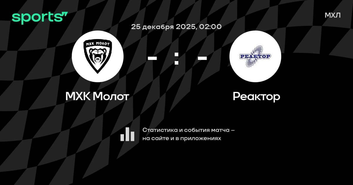 В предстоящем матче в рамках турнира МХЛ пройдет встреча команд МХК Молот - Реактор в городе на стадионе Molot.