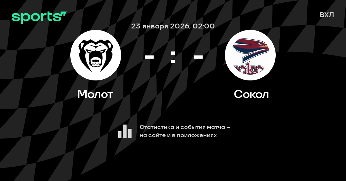 В предстоящем матче в рамках турнира ВХЛ пройдет встреча команд Молот - Сокол в городе на стадионе Molot.