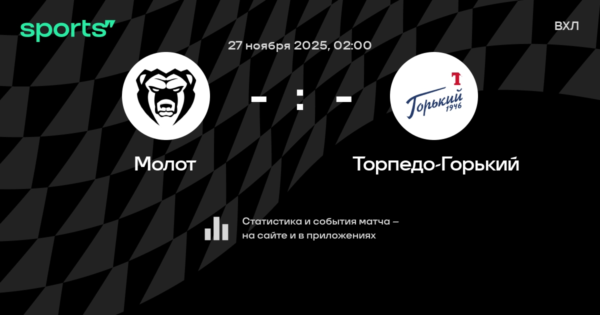 В предстоящем матче в рамках турнира ВХЛ пройдет встреча команд Молот - Торпедо-Горький в городе на стадионе Molot.